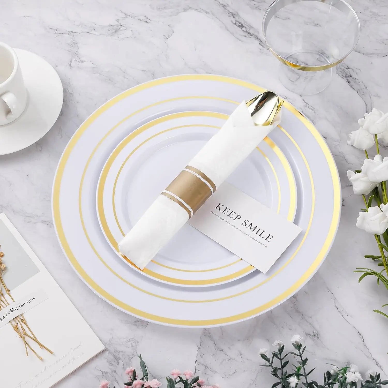 Elegant Design: Sophisticated gold accents add a timeless, upscale look to any table setting.