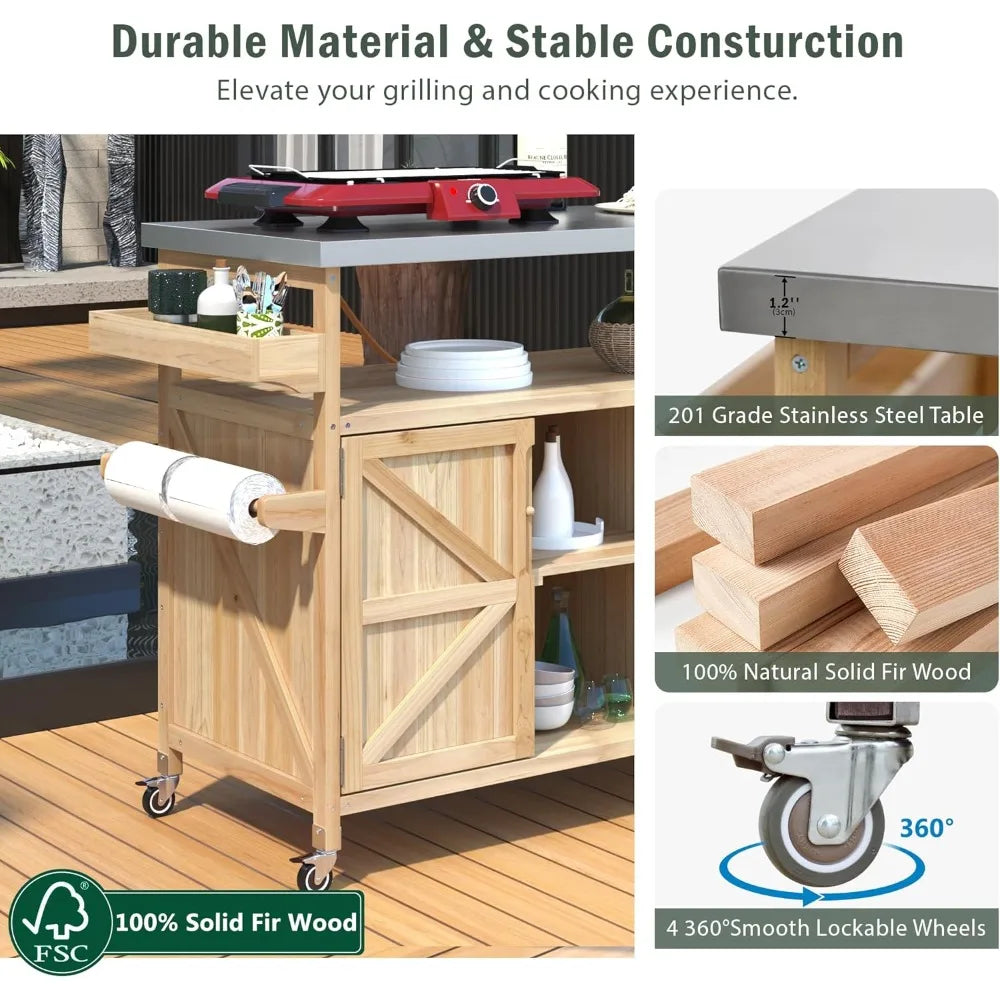 Versatile Use: Functions as a grill stand, prep station, or mobile outdoor kitchen island for entertaining and cooking.